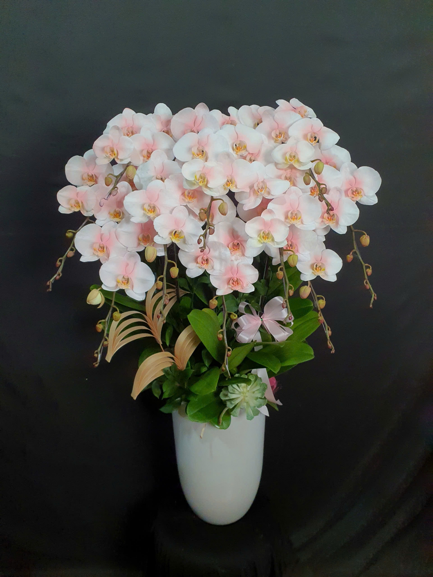 Mỗi nghệ nhân cắm hoa sẽ tạo ra các mẫu hoa khác nhau, không hoàn toàn giống nhau 100% và có độ tùy biến đôi chút, hoalantacpham.com cam kết đảm bảo tầm 90%-95% như mẫu cho quý khách hàng (100% sản phẩm hoa lan từ người dân làng hoa Lâm Đồng)