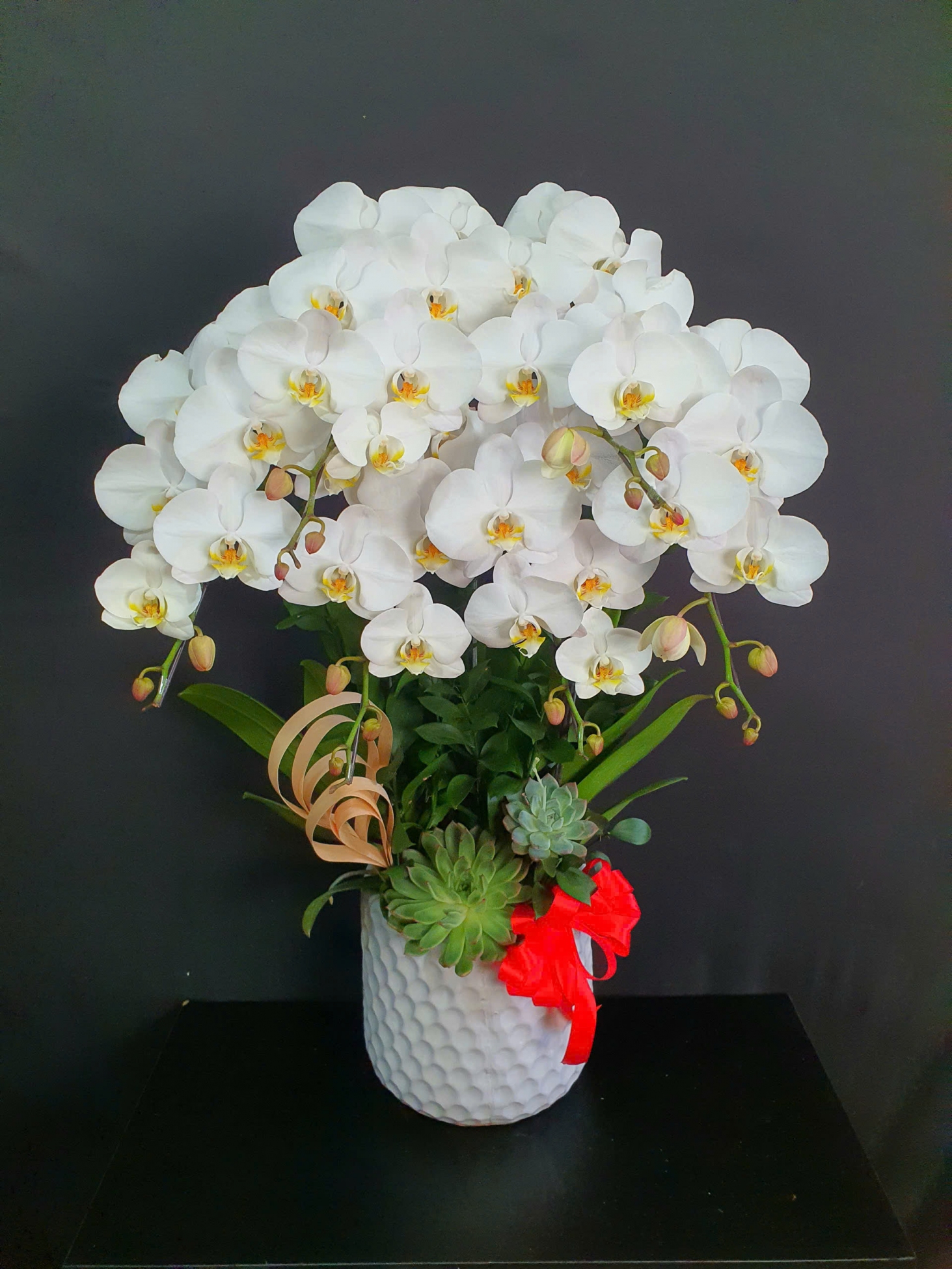 Mỗi nghệ nhân cắm hoa sẽ tạo ra các mẫu hoa khác nhau, không hoàn toàn giống nhau 100% và có độ tùy biến đôi chút, hoalantacpham.com cam kết đảm bảo tầm 90%-95% như mẫu cho quý khách hàng (100% sản phẩm hoa lan từ người dân làng hoa Lâm Đồng)