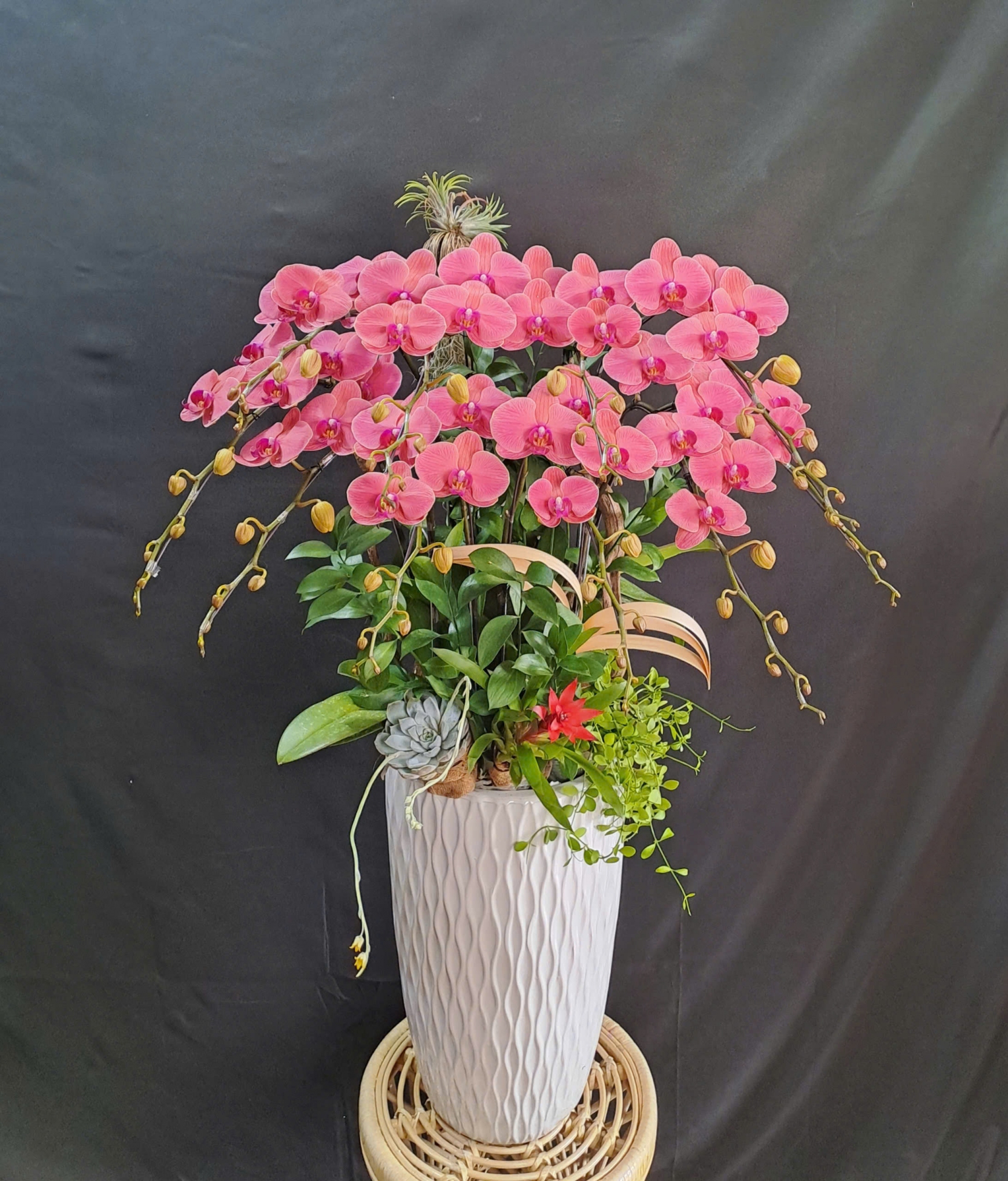 Mỗi nghệ nhân cắm hoa sẽ tạo ra các mẫu hoa khác nhau, không hoàn toàn giống nhau 100% và có độ tùy biến đôi chút, hoalantacpham.com cam kết đảm bảo tầm 90%-95% như mẫu cho quý khách hàng (100% sản phẩm hoa lan từ người dân làng hoa Lâm Đồng).