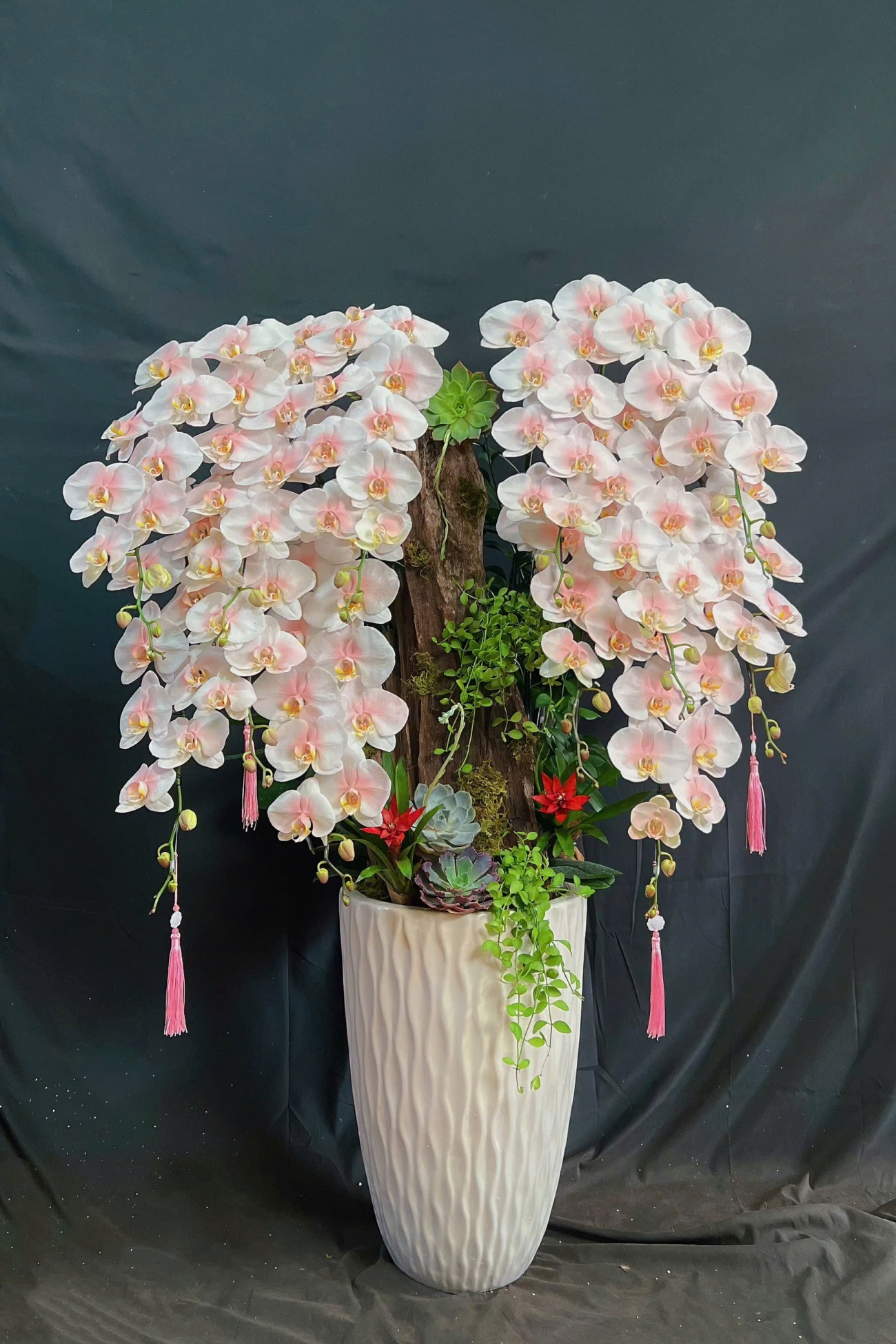 Lan Hồ Điệp Trắng Phun Hồng Mix Lũa Cao Cấp - LHD345